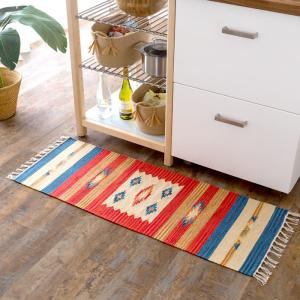 キッチンマット おしゃれ 玄関マット 45×120cm ラグ マット キリム インド綿 オルテガ エスニック ネイティブ 民族 Iタイプ キッチン用品 31750