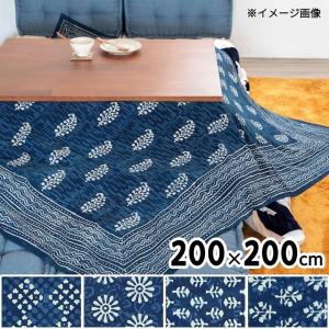 こたつカバー インディゴ プリント マルチ クロス 200×200cm 大判 コットン クロス マルチカバー 洗える 洗濯 上掛け 正方形 リメイク 模様替え テーブル 90223