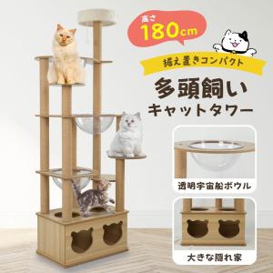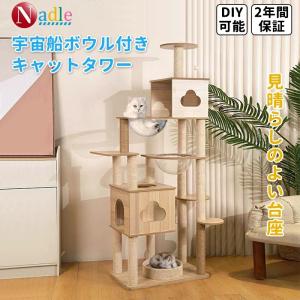 NADLE キャットタワー 木製 スリム 猫タワー 大型 おしゃれ 大型猫 多頭飼い 宇宙船 室内 キャットツリー 高さ180cm 麻紐 爪とぎ 猫ハウス 運動不足解消 安定感