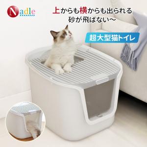 NADLE 猫トイレ トイレ 猫用 大型 上から猫トイレ 飛び散らない 深型 掃除しやすい キャットトイレ 蓋付き 消臭 匂い対策 大きめ 大型猫 コンパクト 2年保証