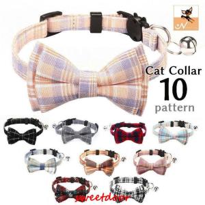 猫用首輪 ねこ ペット用品 チェック柄 カラー チョーカー セーフティーバックル 蝶ネクタイ リボン 鈴付き おしゃれ かわいい おめかし キュート