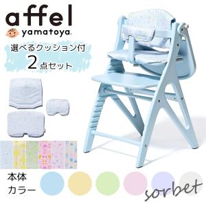大和屋 ベビーチェア アッフルソルベチェア 専用クッション付 2点セット キッズチェア パステル ハイチェア テーブル付き 子供用椅子