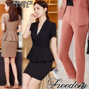 大きいサイズ スーツ OL オフィス 卒業式 入学式 パンツスタイルorスカートスタイルのペプラムJK半袖レディーススーツ L 2L 3L 4L 5L サイズ セール
