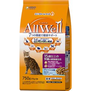 ユニ・チャーム AllWell15歳以上の腎臓の健康維持用フィッシュ味挽き小魚とささみフリーズドライパウダー入り 750g