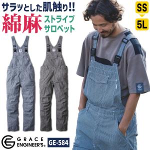 グレースエンジニア 薄手 綿麻 ヒッコリー サロペット オーバーオール つなぎ 涼しい ストライプ 春夏 作業服 作業着 酪農 農業 メンズ レディース sk-ge584