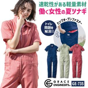 グレースエンジニア 薄手 レディース 半袖つなぎ オーバーオール 涼しい 春夏 作業服 作業着 カジュアル 酪農 農業 自動車整備 ビッグシルエット sk-ge735