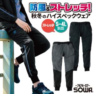 SOWA 秋冬 防風 ストレッチ ジョガーパンツ メンズ レディース 仕事服 作業服 作業着 カジュアル おしゃれ sw-7474-07-b