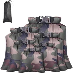 防水 ドライバッグ 6枚セット スタッフバッグ キャンプ 登山 マリンスポーツ ダイビング 海水浴 釣り アウトドア 旅行(迷彩柄)
