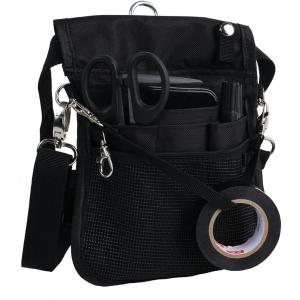 多機能 エプロンバッグ ナースポーチ ウエストバッグ Sサイズ ダブルジッパー 仕事用 12ポケット(Sサイズ-ブラック)