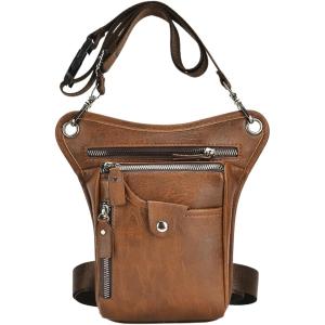 レザータッチ ショルダー バッグ レッグバッグ ウエスト ポーチ ビンテージ PU革 バイク アウトドア アメカジ (ライトブラウン)