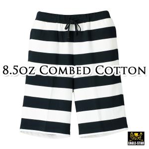 メンズ 太ボーダー ハーフパンツ 8.5ozコーマコットン ウエストゴム&紐 EAGLE STAR