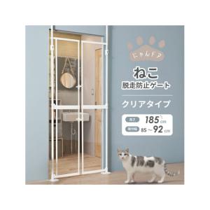 RAKU ペットゲート 安全ゲート 155cm ペットフェンス 突っ張り式 全柵間隔3.5cm ドア付き 取付幅61.5-246cm選択可 猫脱走防止フェンス 猫飛び越え脱出防止