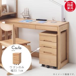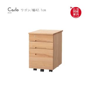 ワゴン のみ 幅33.1cm 昇降袖 アルダー材 無垢材 引出し 日本製 国産 安心 キャスター付き カギ付き t003-m054-cal-wg2 堀田木工 カルロ