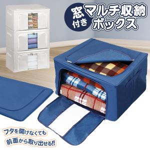 収納ボックス 中身が見える窓 折りたたみ 積み重ね可能 前面/側面ファスナー付 布製 衣装ケース クローゼット 衣替え 押入れ 収納 /100S◇ 窓付き収納ボックス