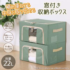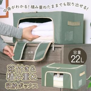 収納ボックス 22L フタ付 窓付 積み重ね 折りたたみ 収納ケース 頑丈 衣装ケース 押入れ収納 ファスナー 押入れ おもちゃ クローゼット /80S◇ 積重ねボックス