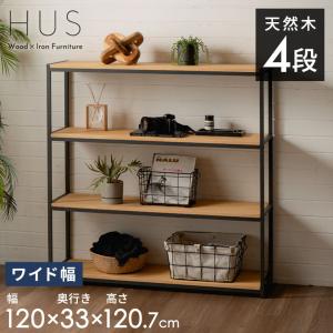 棚 ラック 4段 収納 木製 スチール オープンラック シェルフ 収納棚 おしゃれ 大容量 大型 推し活 オフィス 幅120 奥行33 高さ120 HUS ヒュース 西海岸 84115