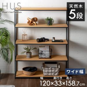 棚 ラック 5段 収納 木製 スチール オープンラック シェルフ 収納棚 おしゃれ 大容量 大型 推し活 オフィス 幅120 奥行33 高さ150 HUS ヒュース 西海岸 84116