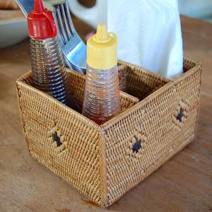 アジアン雑貨 アタで編まれたスクエア型スタンド4分割収納ケース Eタイプ アジア工房