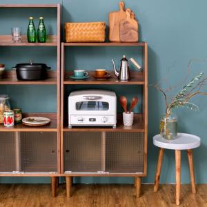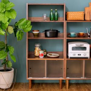 シェルフ 木製 ガラス扉 2段 脚付き 収納棚 引き戸 高さ116cm 幅64cm 本棚 おしゃれ 天然木 91395