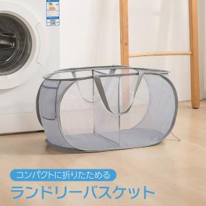 折りたためる洗濯カゴ ランドリーバスケット メッシュ 自立 大容量 収納 洗濯籠 洗濯物入れ コンパクト 軽量 新生活 l-basket02-2 パーテーション1あり