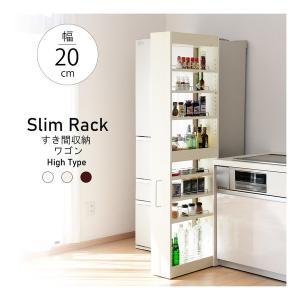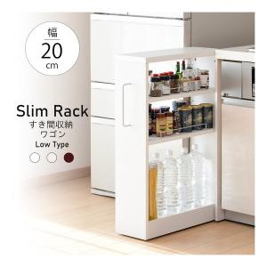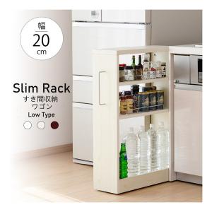 キッチンワゴン 隙間収納 幅20cm キャスター付き スリム 収納 洗面所 ランドリー 木製 すき間 ワゴン ロータイプ ホワイト 白 JKプラン MJ-007 WH