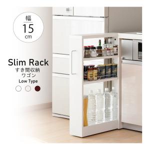 キッチンワゴン 隙間収納 幅15cm キャスター付き スリム 収納 洗面所 ランドリー 木製 すき間 ワゴン ロータイプ ホワイト 白 JKプラン MJ-006 WH