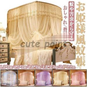 お姫様風 蚊帳 伸縮可 5サイズ おしゃれ 贅沢 宮廷 高級感 四角い頂 広い ベッドカーテン 風通し 蚊除け 虫よけ プリンセス お姫様 気分 可愛い 快適 安眠