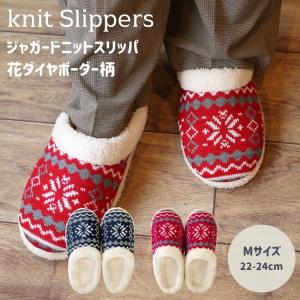 Knit slippers ニットスリッパ 花 ダイヤボーダー柄 M
