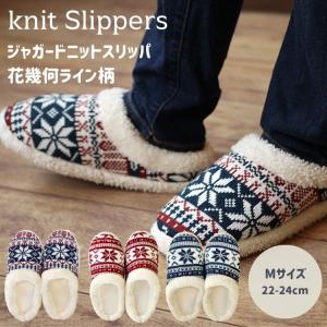 Knit slippers ニットスリッパ 花 幾何ライン柄 M