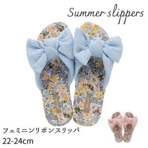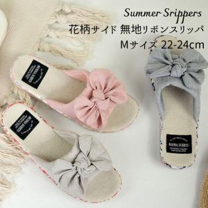 在庫処分特価 Summer slippers サマ―スリッパ 花柄 サイド 無地 リボン スリッパ M 22〜24cm