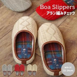 ボア スリッパ アラン編み チェック