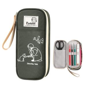 文房具 筆箱 迷彩 ペンケース 男子 学生 たっぷり収納 キャンバス 大容量 小物入れ ポーチ (グリ