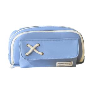 筆ばこ韓国 筆箱 ペンケース 韓国 文房具 大容量 シンプル 中学生 高校生 女の子 複数収納 (ブル