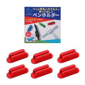 SASAPA 6個セット ペンホルダー 粘着式 シリコン 一本差し デスク周り 便利グッズ ボールペン (赤
