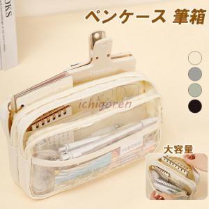 ペンケース 筆箱 大容量 文具バッグ シンプル お洒落 大容量 可愛い 透明 無地