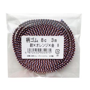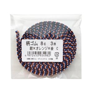 金天馬 柄ゴム 平ゴム ノートバンド ブックバンド 靴ひも ラッピング (8mm幅 紺×オレンジ×金 C 3