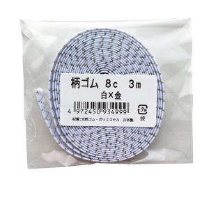 金天馬 柄ゴム 平ゴム ノートバンド ブックバンド 靴ひも ラッピング (8mm幅 白×金 3m)