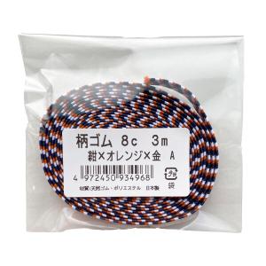 金天馬 柄ゴム 平ゴム ノートバンド ブックバンド 靴ひも ラッピング (8mm幅 紺×オレンジ×金 A 3