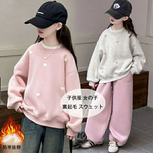 韓国子供服 女の子 スウェット 厚手 裏起毛あり ハート柄 トップス トレーナー ピンク グレー キッズ スウェット 防寒抜群 あたたかい 春着 秋着 冬着 おしゃれ かわいい ハート柄 スウェット 学生 通学着 おでかけ 普段着 誕生日 プレゼント 120 130 140 150 160 170