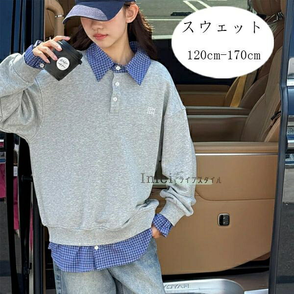 送料無料 子供服 女の子 スウェット トレーナー グレー 春服 秋服 長袖 ラペル トップス スウェット キッズ 子供 学生 レジャー トレーナー アンサンブル おしゃれ スウェット 通学着 ジュニア服 お出かけ 春着 秋着 冬着 120 130 140 150 160 170 Imei 子ども服