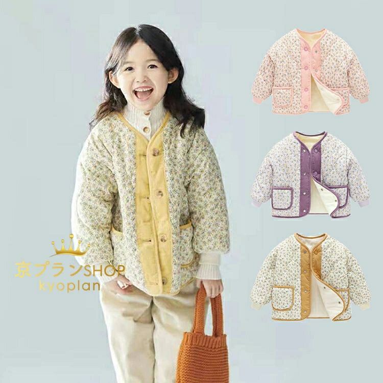 子供 キッズ 冬用アウター 女の子 可愛い花柄 もこもこ 裏起毛 暖かい 秋冬物 防寒ジャケット キッズ 冬用 90cm-150cm 通園 通学 花柄 防寒コート 中綿ジャケット 中綿コート