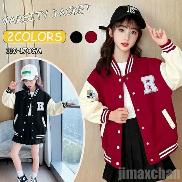 新生活 気楽 スタジャン ジャンパー ジャケット 女の子 キッズ スプリングコート バイカラー アウター ブルゾン コットン 子供服 長袖 通気性抜群 野球服 ジュニア カジュアルコーデ