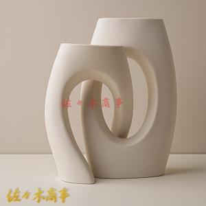 花びん 異型 北欧風 花器 ベージュ 造花セット 造花付き 置物 和風デザイン 陶磁製花器 陶器花器 ドライフラワ用花器 シンプルデザイン