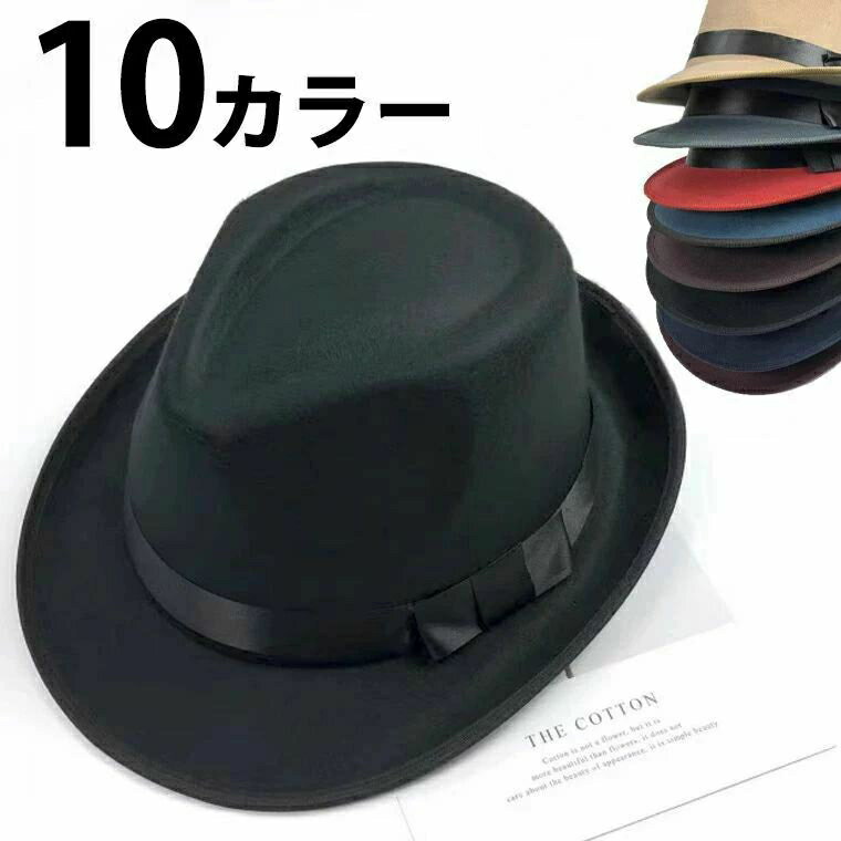 合皮 から選べる シンプル中折れハット メンズ 中折れ帽 秋冬 ウール混 フェルト ワイドブリム つば広 お洒落 ダンス