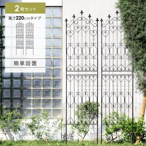 ガーデン フェンス アイアン 目隠し ガーデニング おしゃれ 庭 柵 仕切り トレリス 簡単設置 アンティーク 220cm ハイタイプ 2枚セット