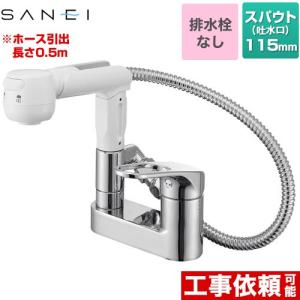 シングルスプレー混合栓(洗髪用) 洗面水栓 排水栓なし 三栄 K37100-W 台付 ツーホールタイプ