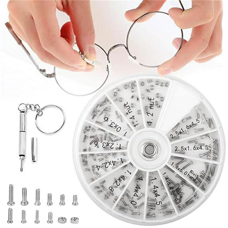 メガネ ネジ ねじ ネジセット サングラス用ネジ 120/600/1000本セット サングラス用ネジ リペアツール 仕分けキット メガネ修理 時計修理 リペア 補修 交換用ネジ ドライバー付き
