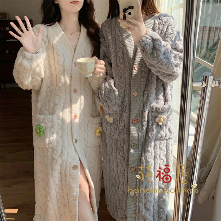 ナイトガウン レディース ルームウェア フランネル 厚手 ゆったり ロングパジャマ スウィート コーラルフリース バスローブ カーディガンパジャマ 可愛い