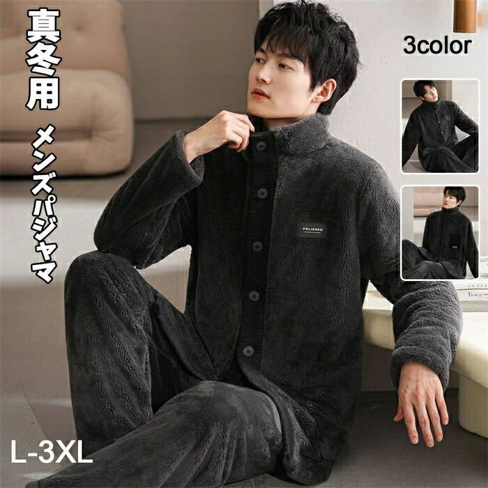 パジャマ メンズ 冬 もこもこ ルームウェア 裏起毛 タートルネック 着る毛布 部屋着 長袖 前開き 上下セット 暖かい 防寒 厚手 ゆったり 吸湿発熱 おしゃれ 丸洗い 入院 冬用 L-3XL