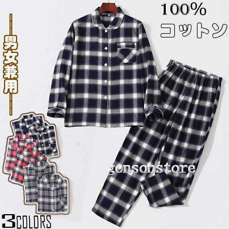 秋冬向き 綿100% 起毛素材 厚手 ルームウェア パジャマ 上下セット 前開き 長袖 レディース メンズ ネルシャツ ズボン 部屋着 ナイトウェア ギフト ご夫婦お揃い